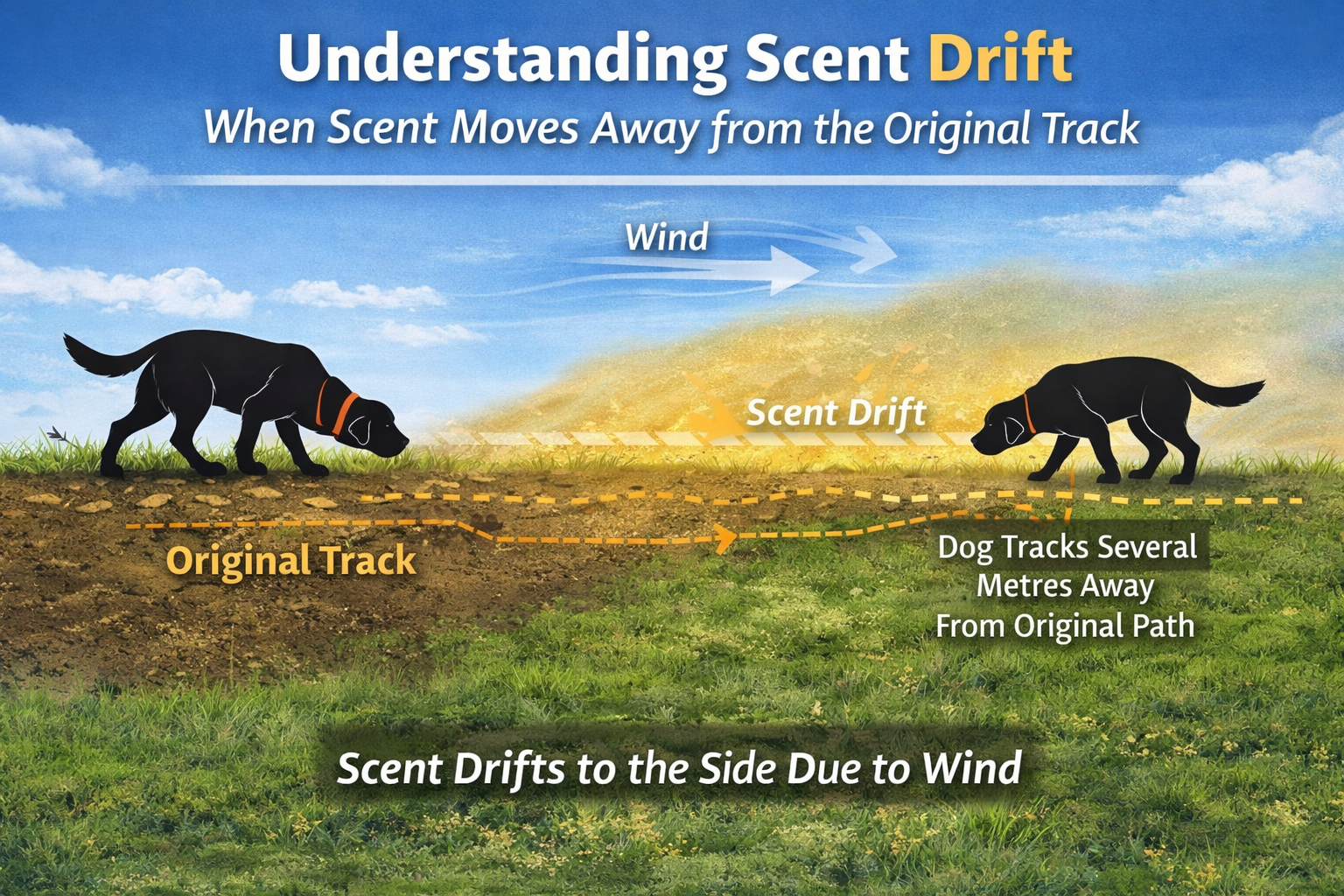 Handlers see their dog leave the track line, lift its head, cast sideways, or move downwind and assume the dog is making a mistake. In many cases the dog is simply following scent exactly as it exists in the environment.