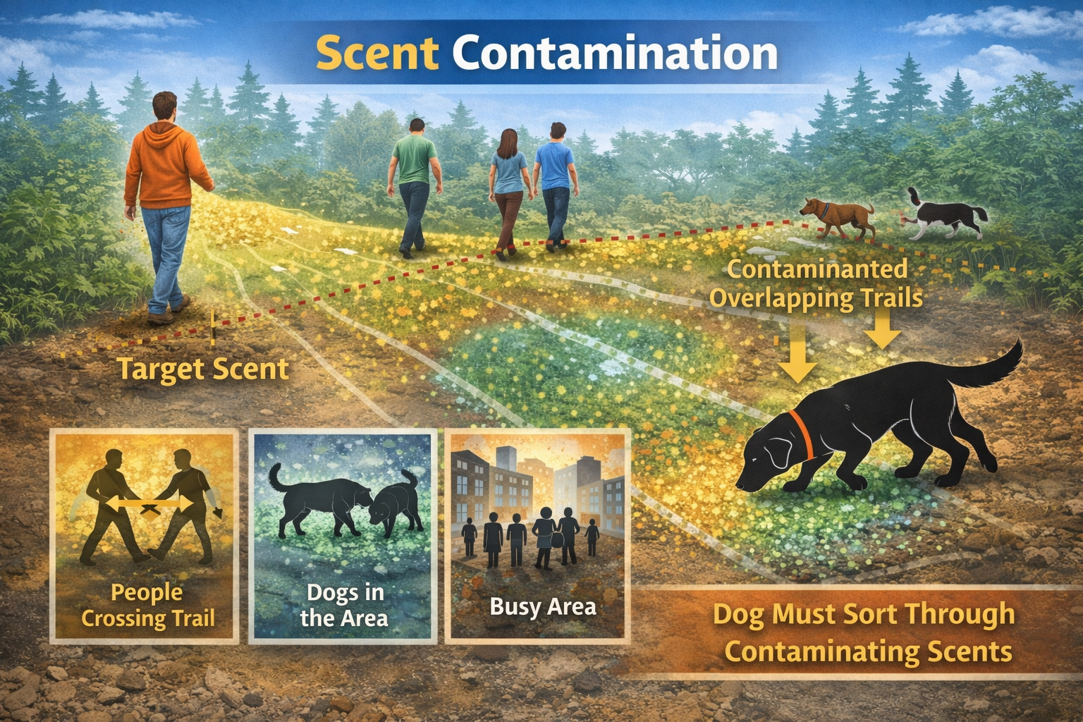 Areas often contain scent from multiple people, animals and environmental sources. This creates scent contamination.