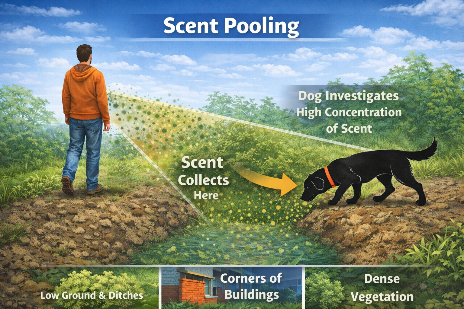 Understanding how scent behaves in the environment is one of the most important pieces of knowledge a scent dog handler can develop.